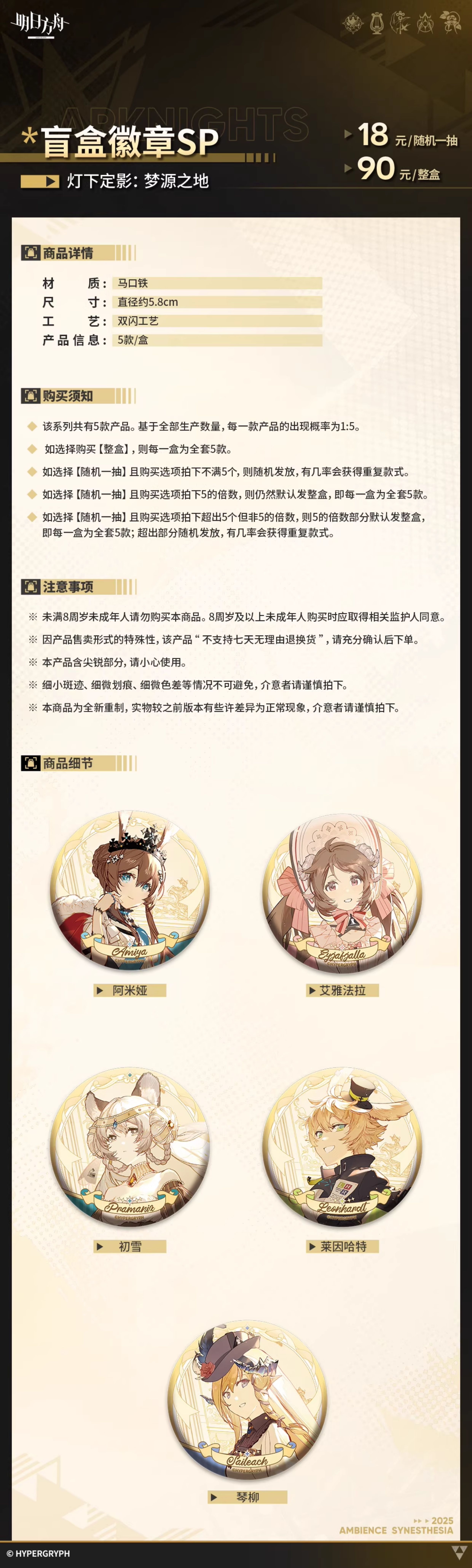 | [명일방주] 2022 앰비언스 시네스티시아 - 등하정영 (쿼드런트 브레이커) 캔뱃지 (0) | 2025.08.20 |