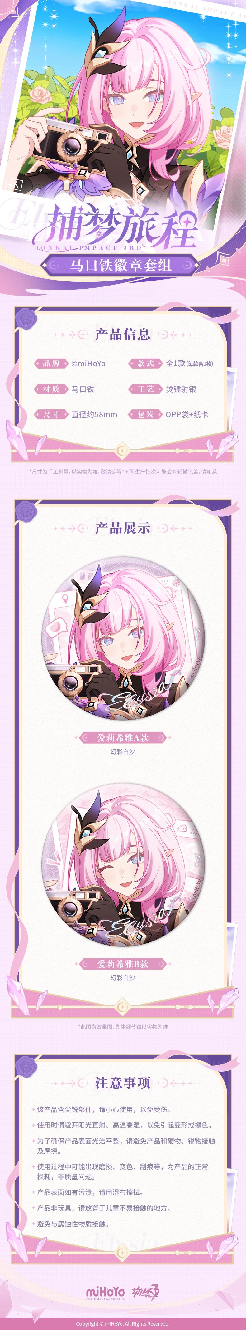 - 캔뱃지 (엘리시아 A타입 1개, 엘리시아 B타입 1개)