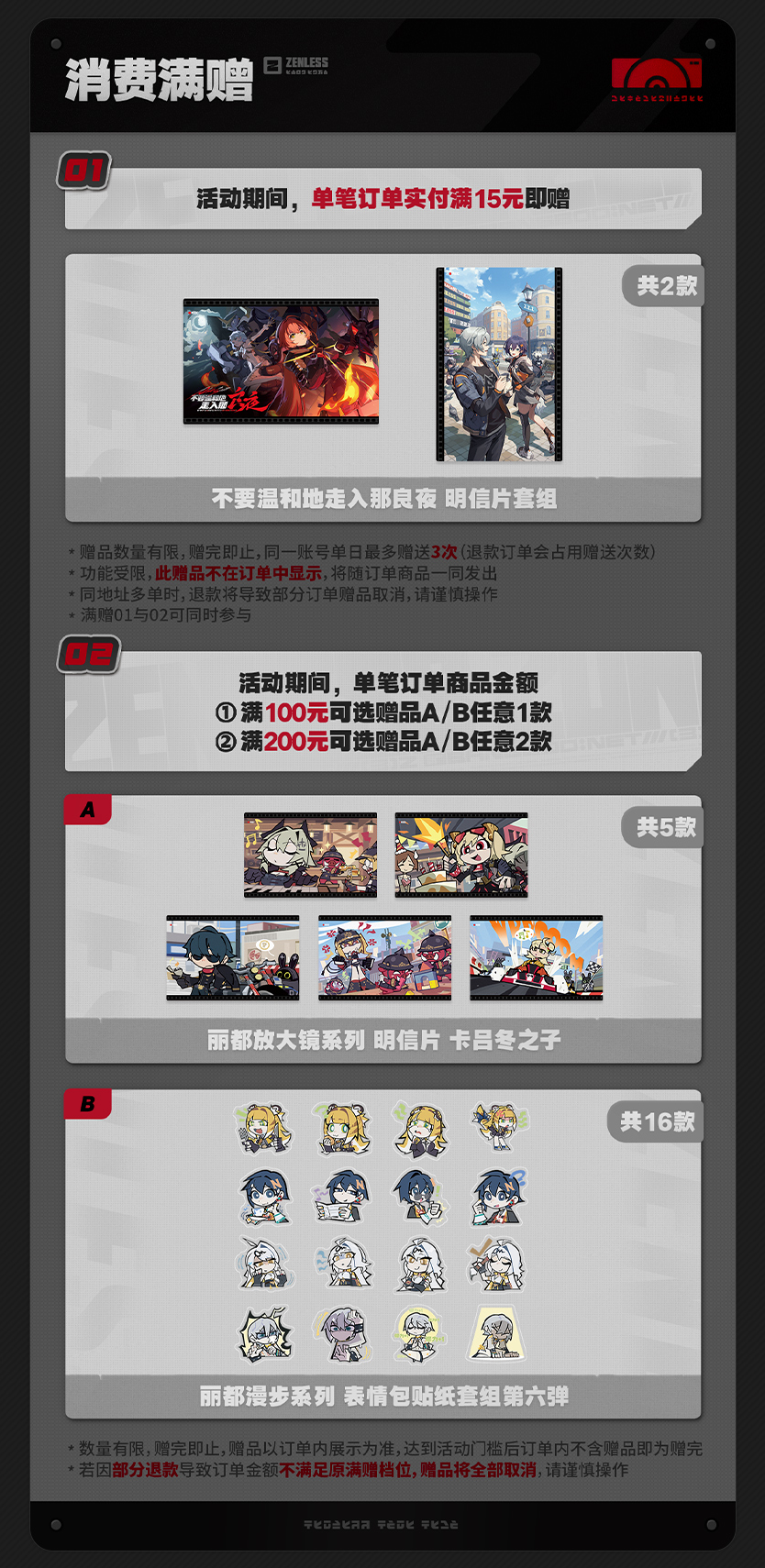- 실결제 금액 15위안 이상 시 「그 좋은 밤에 쉬이 들어가지 마오」 엽서 세트 (총 2종) 즉시 증정