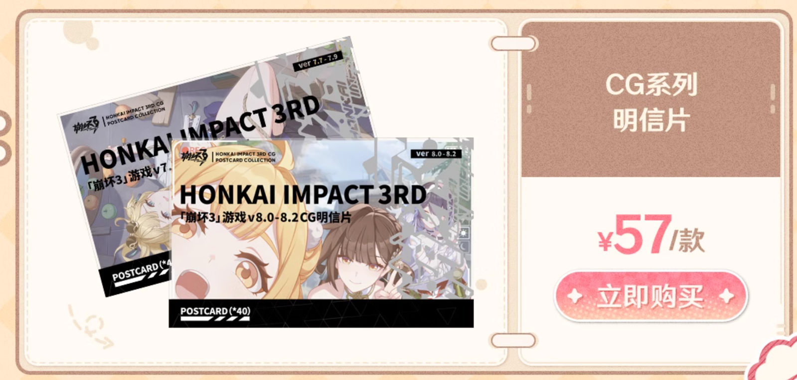 | [붕괴3rd] CG 시리즈 엽서 세트 (0) | 2025.07.16 |