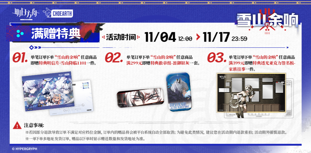 - 설산강림 1101 굿즈 299위안 구매 시, 실버애쉬 에포크 1세트 증정